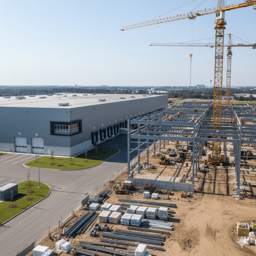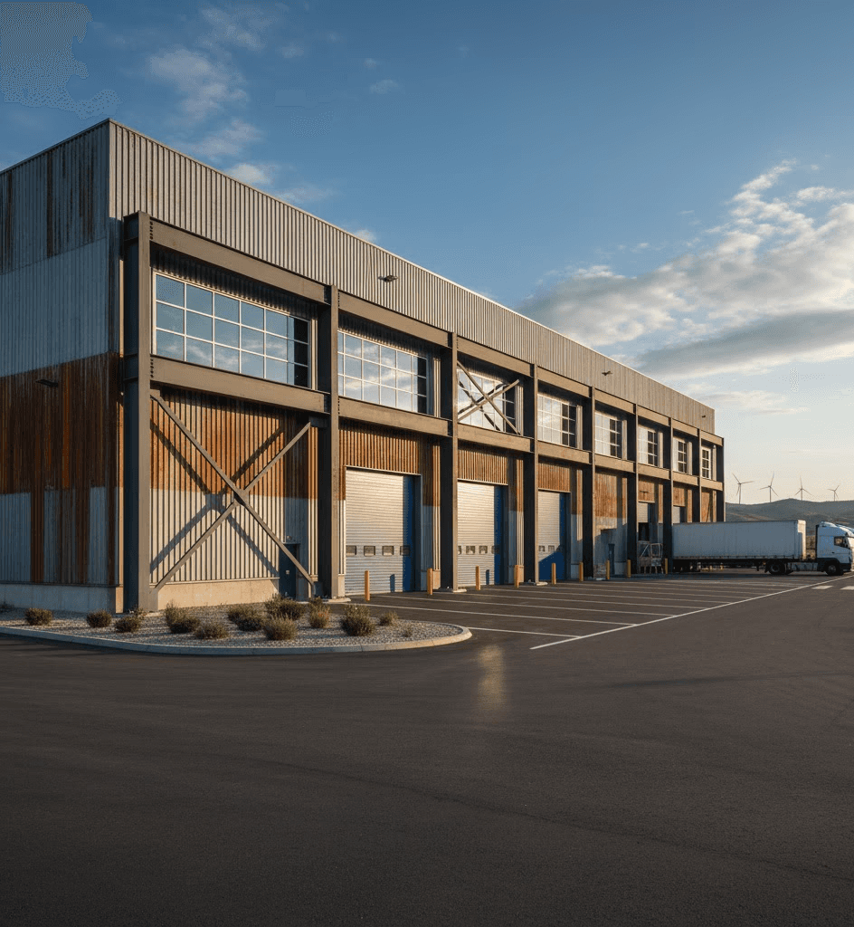 Brindamos una solución integral para el desarrollo y construcción de naves industriales y logísticas “ llave en mano “.